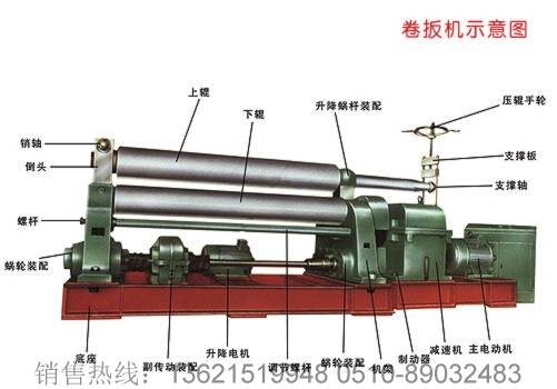 機能與特色: 該機布局情勢為三輥對稱式,上輥在兩下輥中間對稱地位作垂直起落活動,經由過程絲桿螺母蝸桿動彈而取得,兩下輥作扭轉活動,經由過程加速機的輸入齒輪與下輥齒輪齒合,為卷制板材供給扭矩。該機錯誤謬誤是板材端部需借助別的裝備停止預彎。